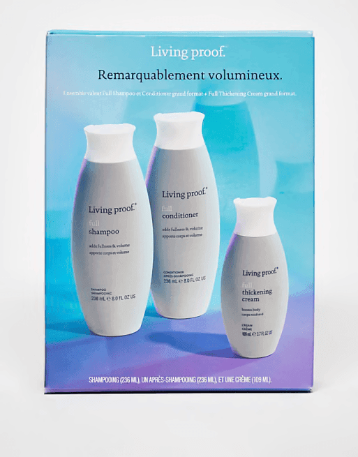 Living Proof Full Gaveæske er den perfekte løsning til dig med normalt til fint hår, der ønsker ekstra fylde og volumen. Sættet indeholder tre nøje udvalgte produkter, der arbejder sammen for at give håret en fyldigere struktur, uden at det føles tungt eller klistret.