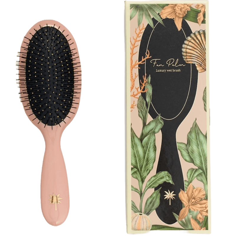 Fan Palm Wet Brush Medium - Beach Rose er en luksuriøs hårbørste designet specifikt til vådt hår, men er lige så effektiv til tørt hår. Denne børste kombinerer funktionalitet og æstetik og er ideel til at rede håret skånsomt ud uden at knække eller skade det.