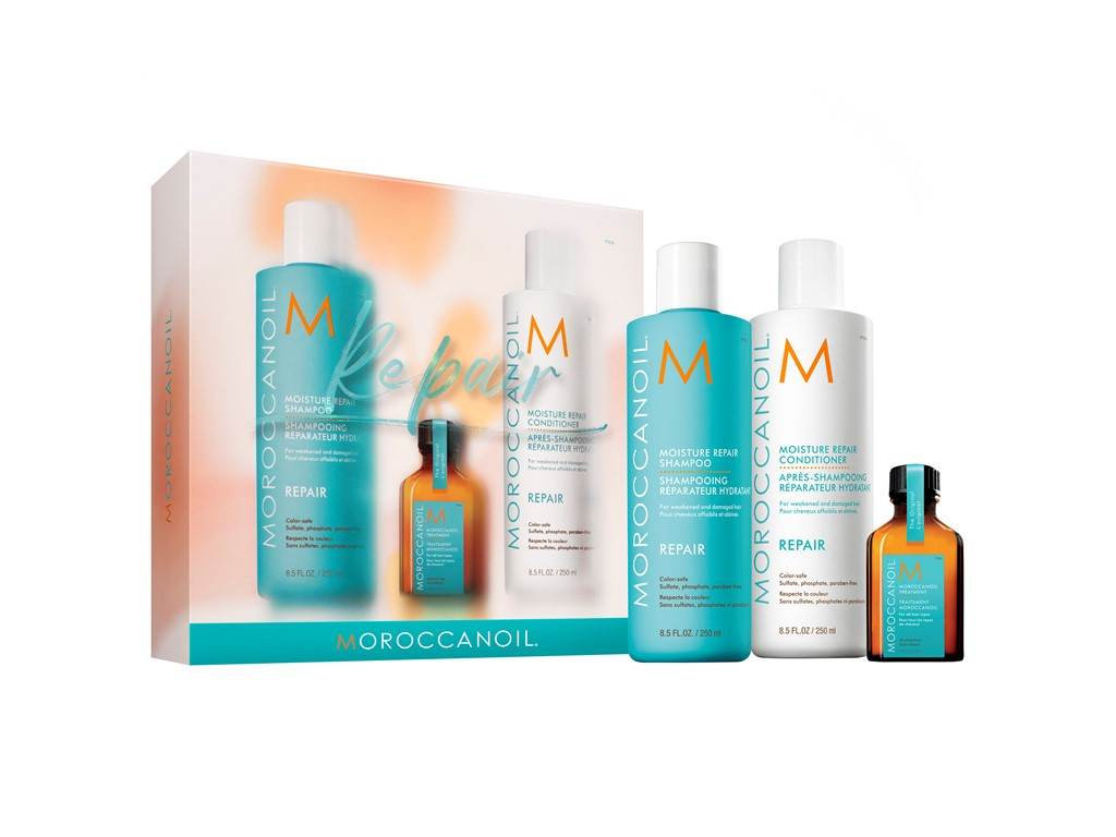 - Moisture Repair Shampoo (250 ml): En nærende shampoo, der genopbygger skadet hår ved at genoprette fugt og styrke fra indersiden og ud.