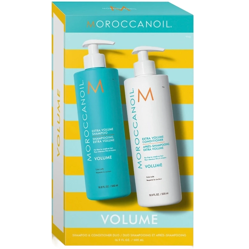 Moroccanoil Extra Volume Duo Special Edition er et eksklusivt sæt bestående af en volumengivende shampoo og balsam, der giver håret et let og fyldigt look. Shampooen renser skånsomt og styrker håret i dybden, mens conditioneren blødgør og gør det mere medgørligt.