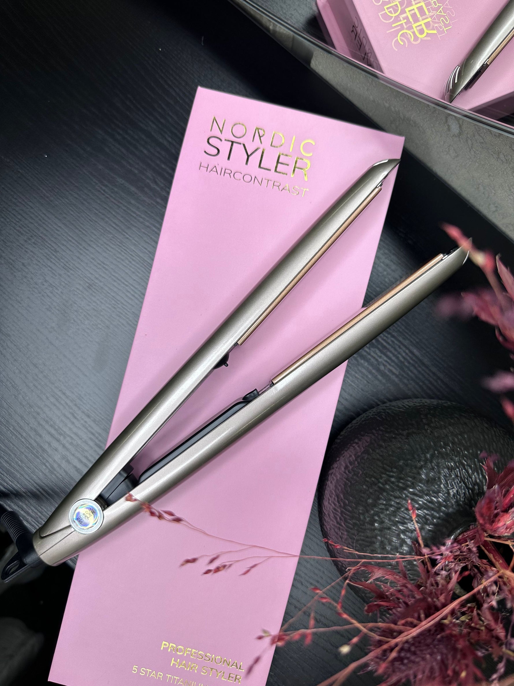Oplev salonresultater derhjemme med Nordic Styler Haircontrast Professional Hair Styler – et eksklusivt stylingjern i elegant champagnefarve, designet til at skabe både glatte og krøllede looks med lethed og præcision.